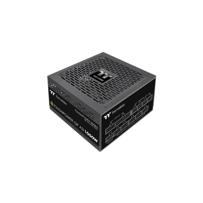 Thermaltake TOUGHPOWER GF A3. Ukupna snaga: 1050 W, Ulazni napon izmjenične struje: 100 - 240 V, Ulazna frekvencija izmjenične struje: 50/60 Hz. Poveznik napajanja matične ploče: 24-pin ATX, Duljina kabela napajanja matične ploče: 60 cm, Duljina kabela SATA napajanja: 500,650,800,950 mm. Svrha: PC/osobno računalo, Faktor forme uređaja za napajanje (PSU): ATX, Certifikat 80 PLUS: 80 PLUS Gold. Boja proizvoda: Crno, Promjer ventilatora: 12 cm, Broj ventilatora: 1 ventilatori. Širina: 150 mm, Dubina: 140 mm, Visina: 86 mm