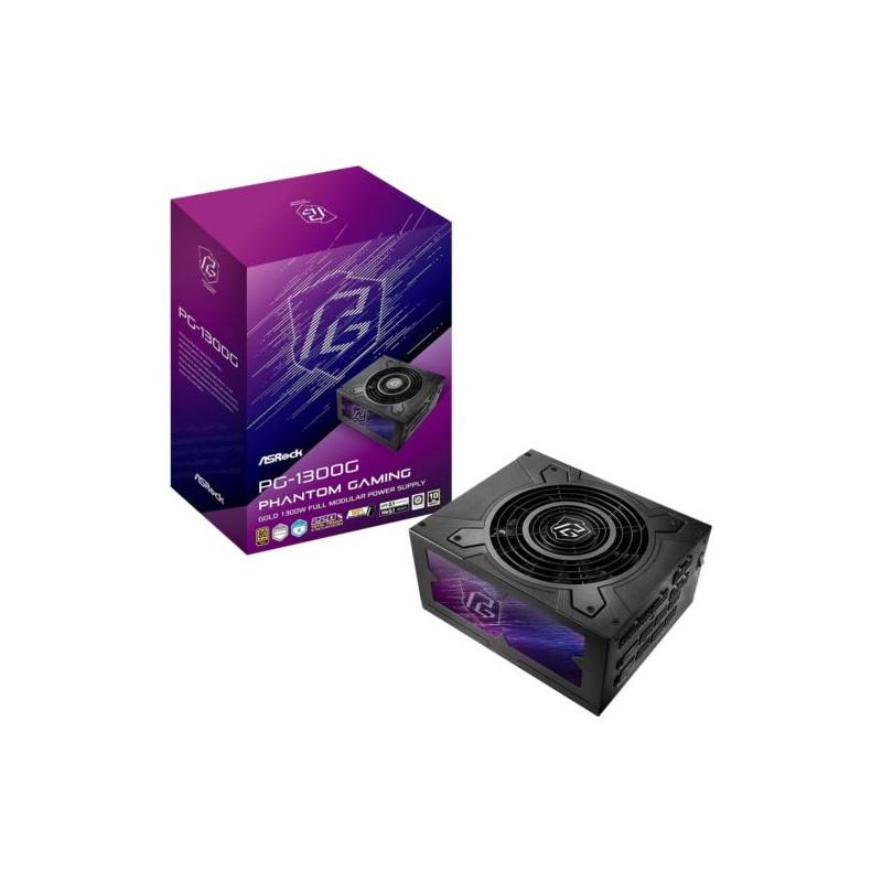 ASRock PSU Phantom Gaming PG-1300G, 1300W, 80 Gold, Fully Modular - 80 PLUS GOLD Certified Cybenetics PLATINUM and LAMBDA A Certified ATX3.1 PCIe5.1 Ready Fully Modular Cable Design Native 12V-2x6 Connector Dual Color Design with TempGuard 100% Highly Reliable Japanese Capacitors 135mm Striped Axial FDB Fan iCool Intelligent Fan Control Mode 5V BOOST function Remarkable 10-Year Warranty Dimensions(L x W x H): 180mm x 150mm x 86mm Sleeved and braided cables