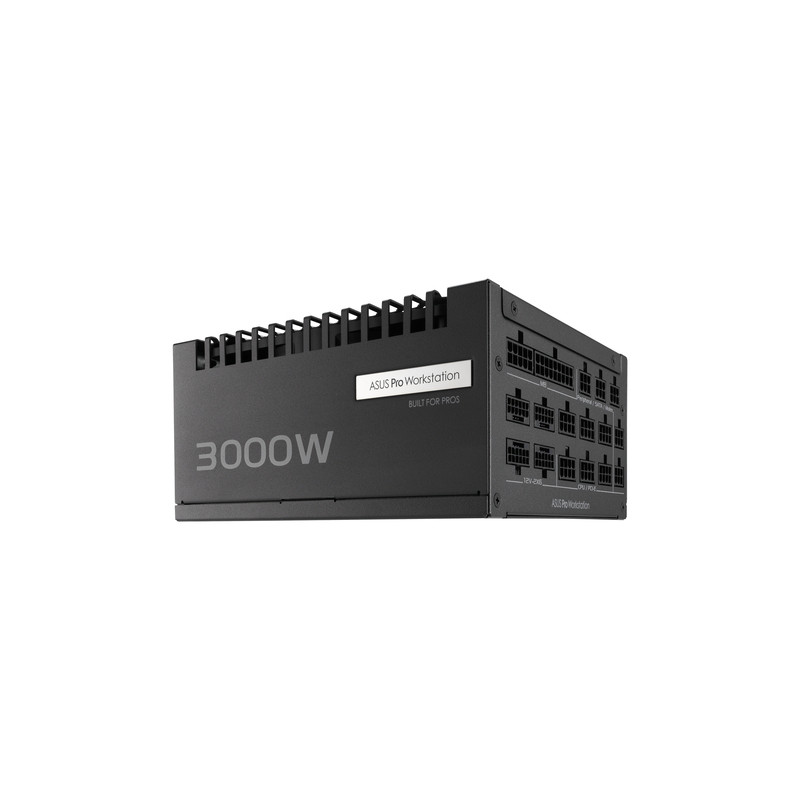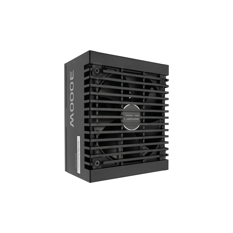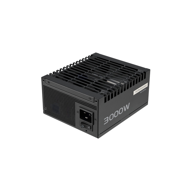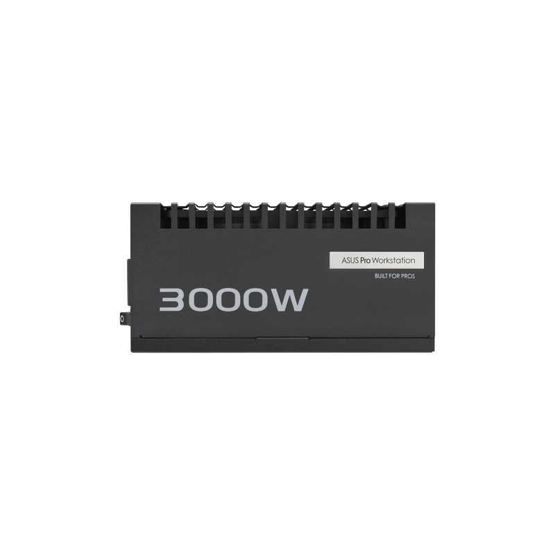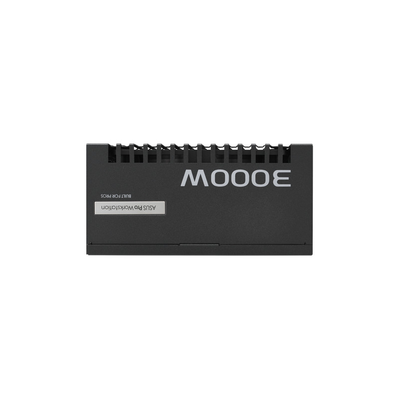 ASUS -PRO-WS-3000P. Ukupna snaga: 3000 W, Ulazni napon izmjenične struje: 220 - 240 V, Tip korekcije faktora snage (PFC): Aktivno. Poveznik napajanja matične ploče: 20+4 pin ATX, Duljina kabela napajanja matične ploče: 61 cm, Duljina kabela SATA napajanja: 120,400 mm. Svrha: PC/osobno računalo, Faktor forme uređaja za napajanje (PSU): ATX, Certifikat 80 PLUS: 80 PLUS Platinum. Boja proizvoda: Crno, Tip hlađenja: Aktivno. Širina: 175 mm, Dubina: 150 mm, Visina: 86 mm