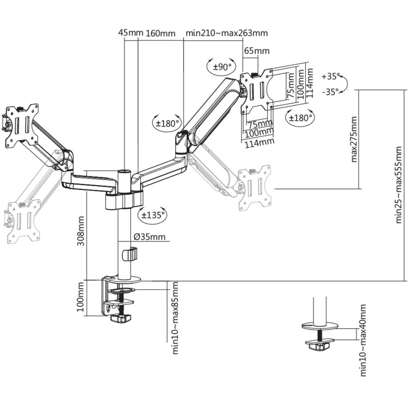 BIT FORCE stolna ručka za 2 monitora s plinskom oprugom BRACKET DMG-32-2M