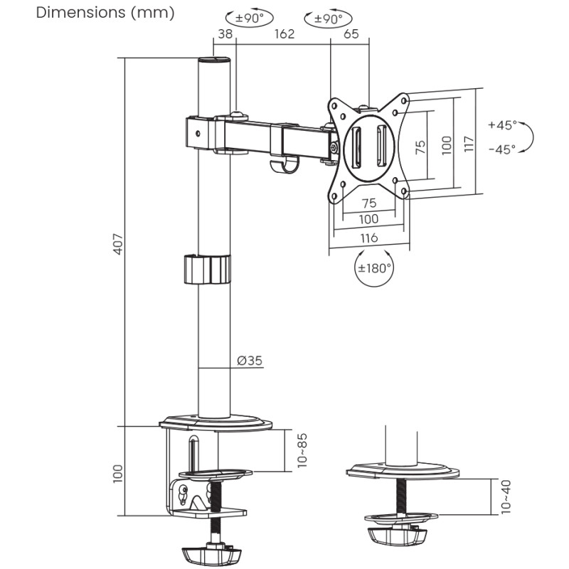 BIT FORCE nagibno-okretni stolni nosač za 17“- 32“ monitor, do 9kg (BRACKET DMM-32-1M)