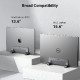 - Ako često radite na prijenosnom računalu, spajanjem vanjskog zaslona i tipkovnice na njega, predstavljeni stalak zasigurno će vam omogućiti poboljšanje ergonomije i udobnosti korištenja opreme. Također će uštedjeti prostor na stolu i omogućiti vam održavanje reda. Možete zaboraviti na zapetljane kabele i nedostatak mjesta za šalicu kave ili prijenosno računalo. Izrađen od čvrste legure cinka, drži prijenosno računalo uspravno, a zauzima malo prostora. Također je savršen za pohranu prijenosnog računala kada ga ne koristite.