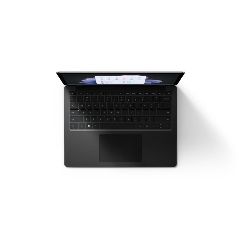 Microsoft Surface Laptop 5. Tip proizvoda: Prijenosno računalo, Veličina: Školjkasto. Porodica procesora: Intel® Core™ i5, Model procesora: i5-1245U. Dijagonala monitora: 34,3 cm (13.5"), Razlučivost zaslona: 2256 x 1504 pikseli, Ekran osjetljiv na dodir. Interna memorija: 8 GB, Vrsta interne memorije: LPDDR5x-SDRAM. Ukupni prostor za pohranu: 512 GB, Mediji za pohranu: SSD. Model ugrađenog grafičkog prilagodnika: Intel Iris Xe Graphics. Instalirani operacijski sustav: Windows 10 Pro. Boja proizvoda: Crno. Težina: 1,3 kg