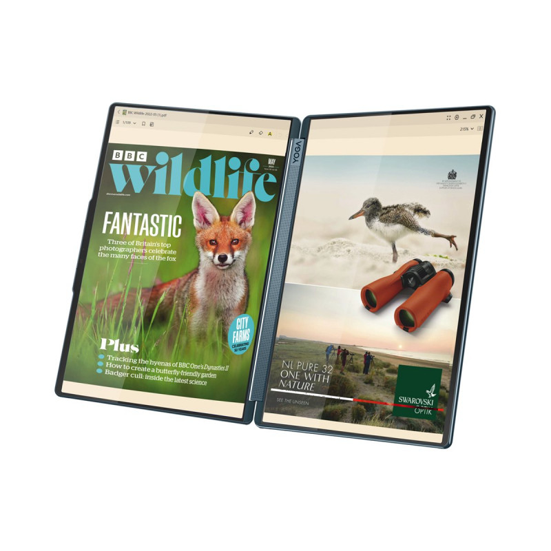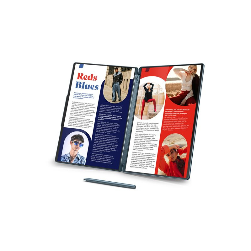 | The Lenovo Yoga Book 9 14IAH10 is designed for versatility and performance, featuring a 14-inch OLED display with a native resolution of 2880 x 1800, offering vibrant visuals with true black capabilities and enhanced color accuracy through the 100% DCI-P3 color gamut. This device supports a 120 Hz refresh rate for smoother animations, ideal for both work and entertainment. With Eyesafe technology and various monitor features, users can enjoy a comfortable viewing experience without straining their eyes. Equipped with powerful internals, the Yoga Book 9 runs on an Intel Core Ultra 7 processor with 16 cores, delivering multitasking capabilities and speed with a turbo boost of up to 5.1 GHz. Storage is seamless with an NVMe SSD that enhances data transfer rates and efficiency. Immersive audio is provided by dual woofers and a high-definition audio system with Dolby Atmos, ensuring a rich sound experience whether streaming media or engaging in virtual meetings. The Yoga Book series embodies the spirit of innovation and adaptability, making it a companion for creative professionals and tech enthusiasts. | |