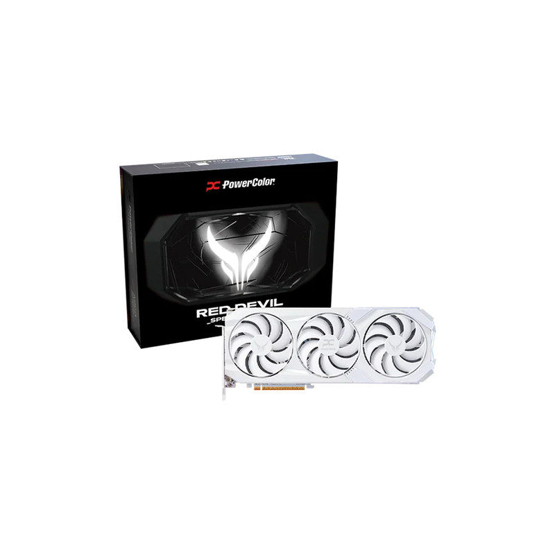 PowerColor Red Devil Radeon RX 9070 XT Spectral White. Skupina kojoj pripada grafički procesor: AMD, Grafički procesor: Radeon RX 9070 XT. Memorija diskretne grafičke kartice: 16 GB, Vrsta memorije grafičke kartice: GDDR6, Memorijska sabirnica: 256 bit. Maksimalna razlučivost: 7680 x 4320 pikseli. Inačica DirectX-a: 12.0, Inačica OpenGL-a: 4.6. Tip sučelja: PCI Express x16 5.0. Tip hlađenja: Aktivno, Broj ventilatora: 3 ventilatori, Boja osvjetljenja: Multi