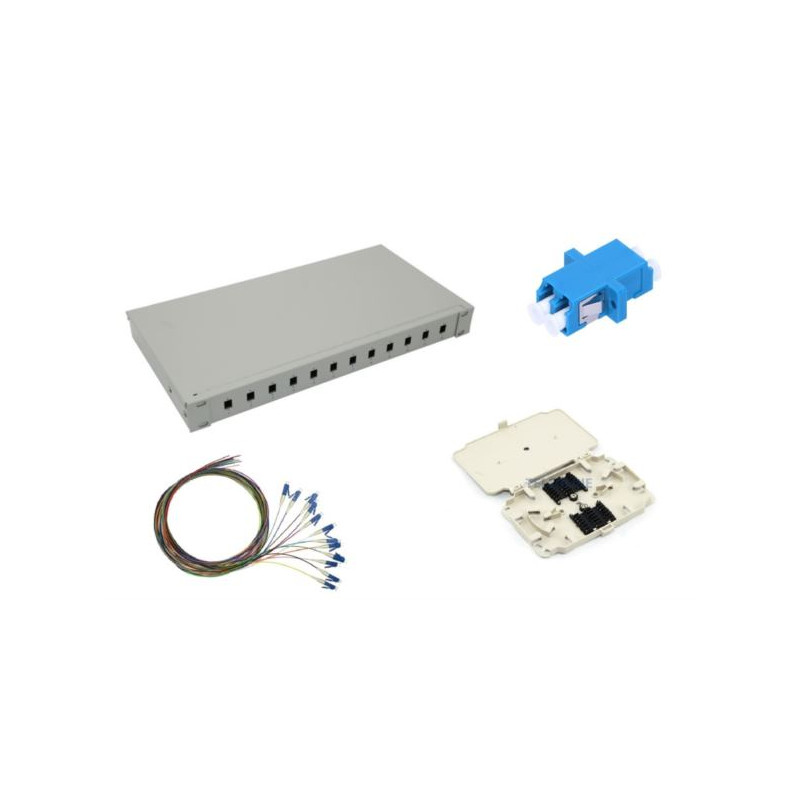 NFO Patch Panel 1U 19" Closed - Singlemode 12x LC UPC Duplex Adapter Pigtail kazeta SET