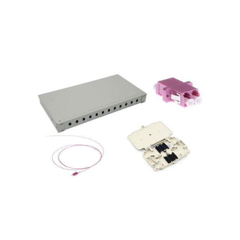 NFO Patch Panel 1U 19" Closed - Multimode 12x LC OM4 Duplex Adapter Pigtail kazeta SET
