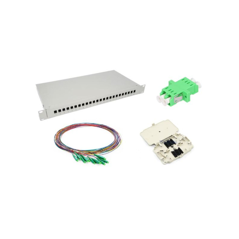 NFO Patch Panel 1U 19" Closed - Singlemode 24x LC APC Duplex Adapter Pigtail kazeta SET
