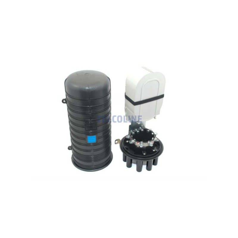 NFO Splice Closure 288F, 7 round entries, 1 oval, 6 trays, Height 500 mm, Pole and Wall mount Material: Polypropylene PP Color: Black Cover diameter: 180 mm Weight: 2,5 kg Protection: IP68 6 splice trays Max. 288 fiber optic splice sleeves Operating temperature: -35 C 65 C Application: Aerial, duct, ground installations Equipment: Wall mounting bracket, Clamp for pole mounting, Fiber optic splice sleeve (x288), Heat shrink sleeve (x8), Insulation tape, Fiber clip, Sandpaper, Ground cable, Markers