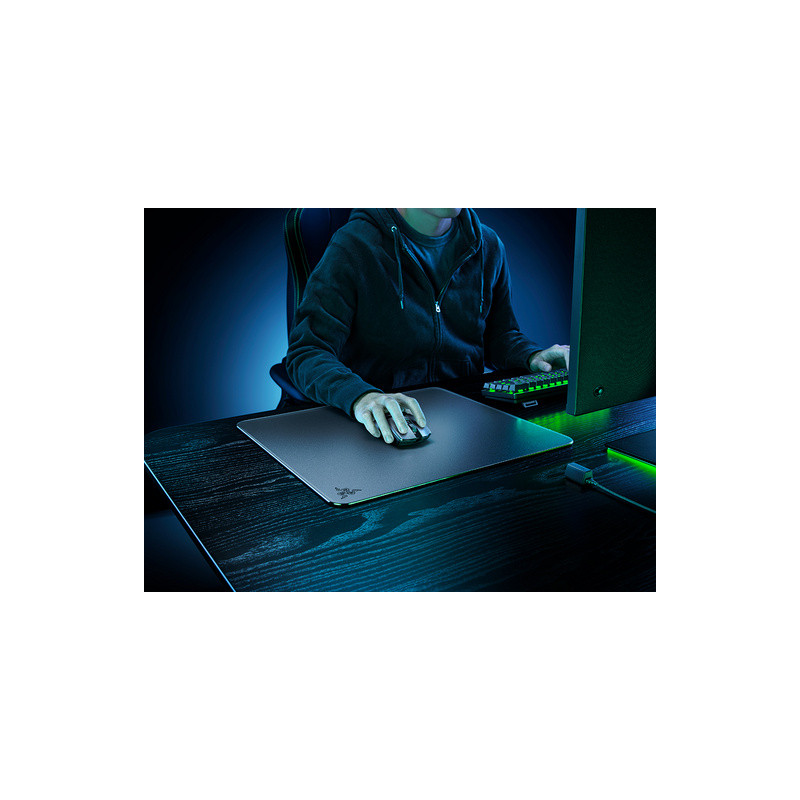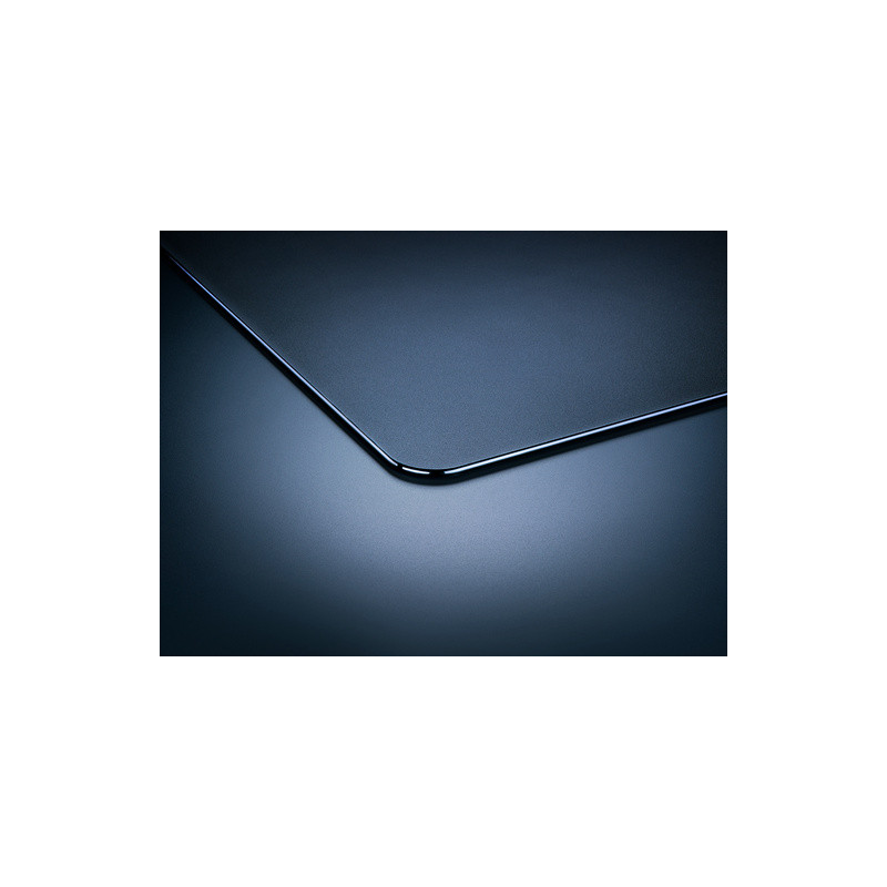 Površina od kaljenog stakla pruža otpornost na udarce i uvijanje. Površina je brušena za glatko kretanje miša po podlozi i sadrži teksturu od 2 μm koja savršeno funkcionira s optičkim senzorima miša.