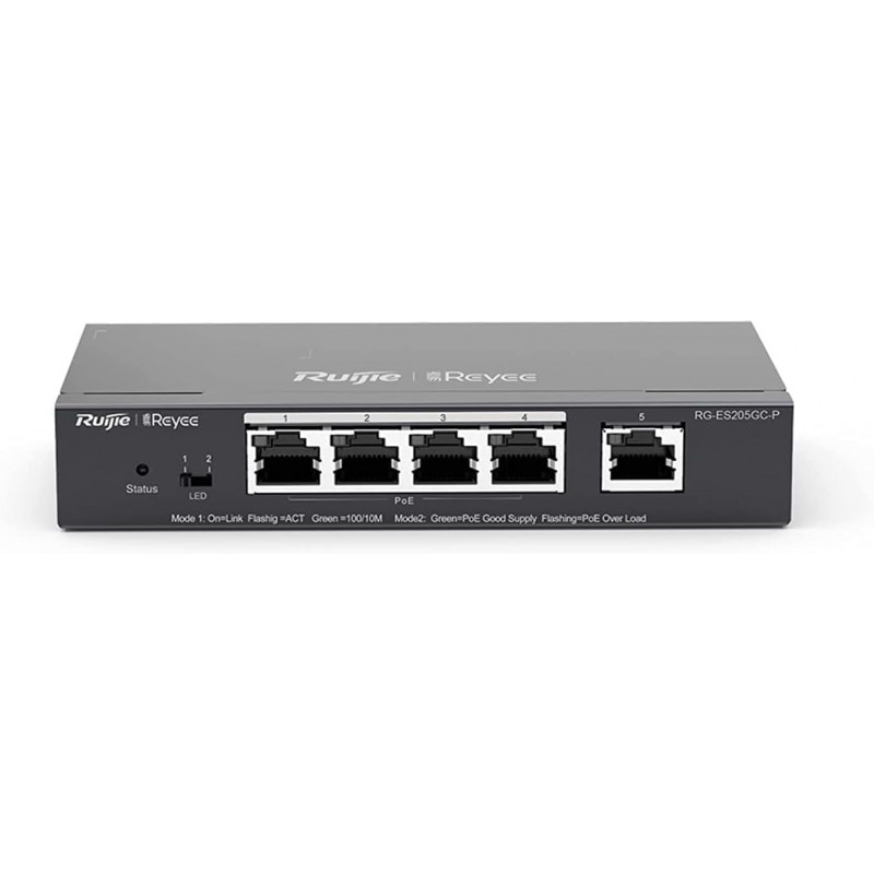 Ruijie switch 5-port Cloud Man. 4 PoE+RG-ES205GC-P4 PoE/POE+Ports,54W PoE PWR budget,Desktop Steel C