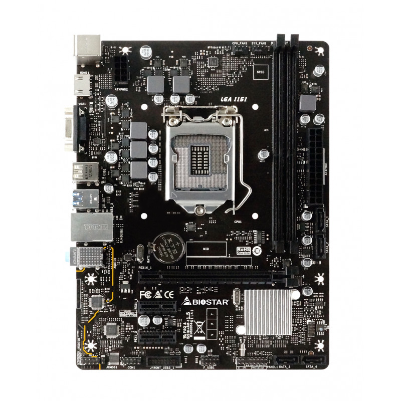 Biostar H310MHP 3.0. Proizvođač procesora: Intel, Utor za procesor: LGA 1151 (H4 utičnica), Kompatibilni procesori: Intel® Celeron®, Intel® Core™ i3, Intel® Core™ i5, Intel® Core™ i7, Intel® Core™ i9, Intel® Pentium®. Podržani tipovi memorije: DDR4-SDRAM, Maksimalna količina interne memorije: 32 GB, Tip memorijskih utora: DIMM. Podržana sučelja pogona za pohranu: SATA III. Vrsta Ethernet sučelja: Gigabit Ethernet. Komponenta za: PC/osobno računalo, Dimenzije matične ploče: Mikro ATX, Obitelj čipseta matične ploče: Intel