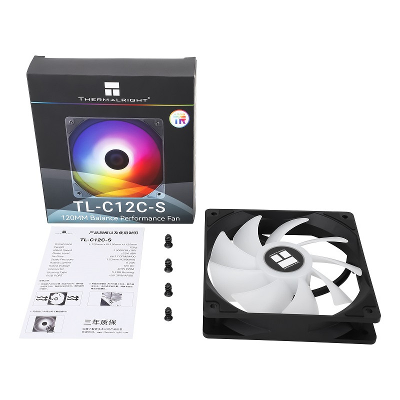 Thermalright TL-C12C-S, Ventilator, 12 cm, 1550 RPM, Crno