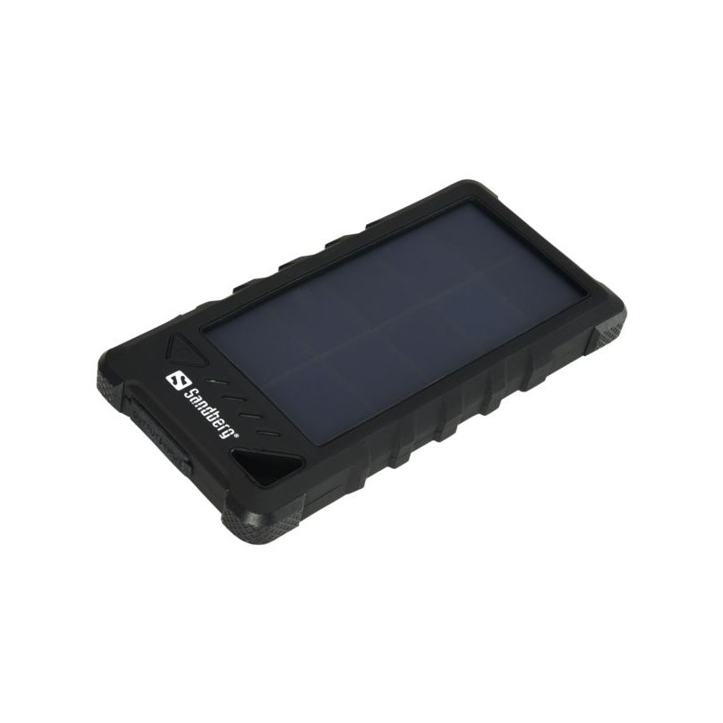 Sandberg Outdoor Solar Powerbank 16000mAh - portable battery which is charged via a USB port or the built-in solar cells up to 6 charging cycles for a typical smartphone charge up to two devices simultaneously IP67 dust, shock and waterproof case Capacity: 16000 mAh Battery type: Li-ion USB-C Input Output: 5V 3A USB-A Outputs: 5V 3.4A total Connectors: 1 x USB-C female, 2 USB-A female Solar panel: 1.4 W 280 mA 4 LED lights battery indicator 1 flashlight (4 x LED) Charge temperature: 0 45? Discharge temperature: -20 60?