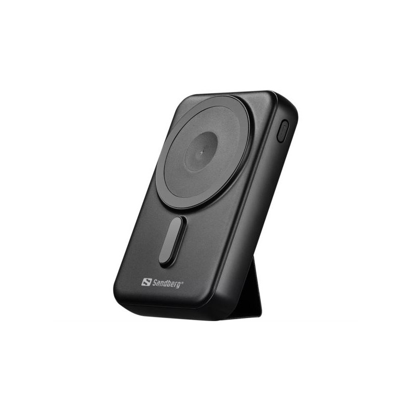 Sandberg Magnet Wireless Powerbank 10000 - really smart powerbank with a range of charging functions. Qi-compatible smartphones can be charged completely wirelessly by placing the phone on the charging plate on top of the power bank. The charging plate is magnetic, and can therefore attach to iPhones that support MagSafe. Its also equipped with a USB-C port for fast charging of devices right up to 22.5W, and a 10W USB-A port. A smart little LCD display shows battery status.