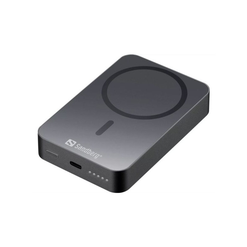 Sandberg Magnet Wireless Powerbank 10000 ALU - a super smart powerbank with several charging functions. Qi-compatible smartphones can be charged completely wirelessly by placing the phone on the charging plate on top of the power bank. The charging plate is magnetic and can therefore be stuck on iPhones that support MagSafe. The power bank is also equipped with a USB-C port for fast charging of devices up to 20W.