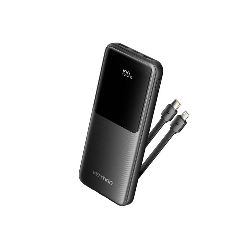 >Mobiteli, tableti i oprema>Powerbank>Vention 10000mAh Power Bank (Micro-USB USB-C USB-A USB-A) with Built-in USB-C and Lightning Cables 22.5W Black LED Displ