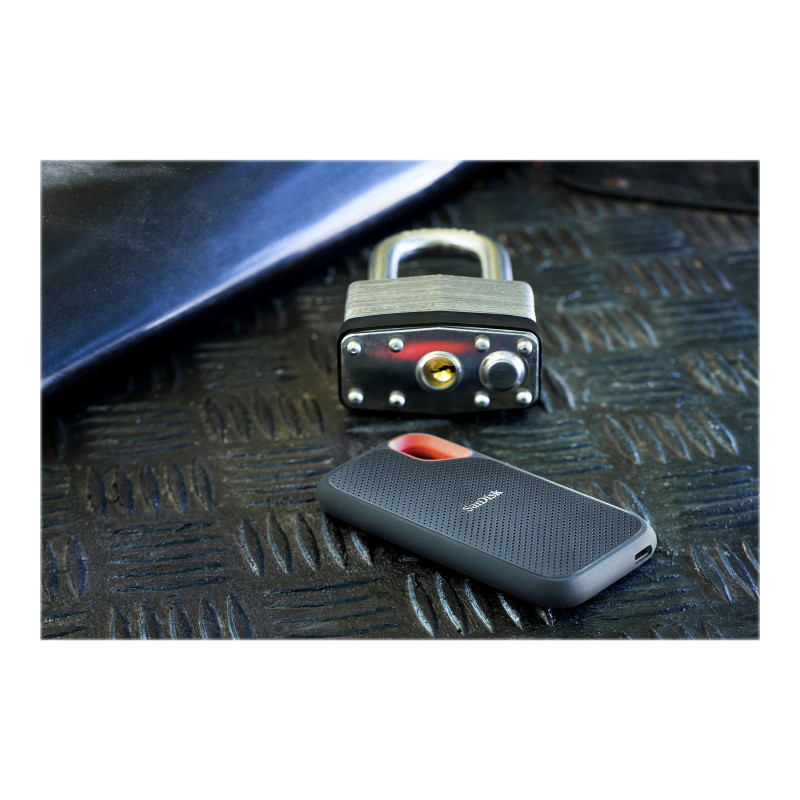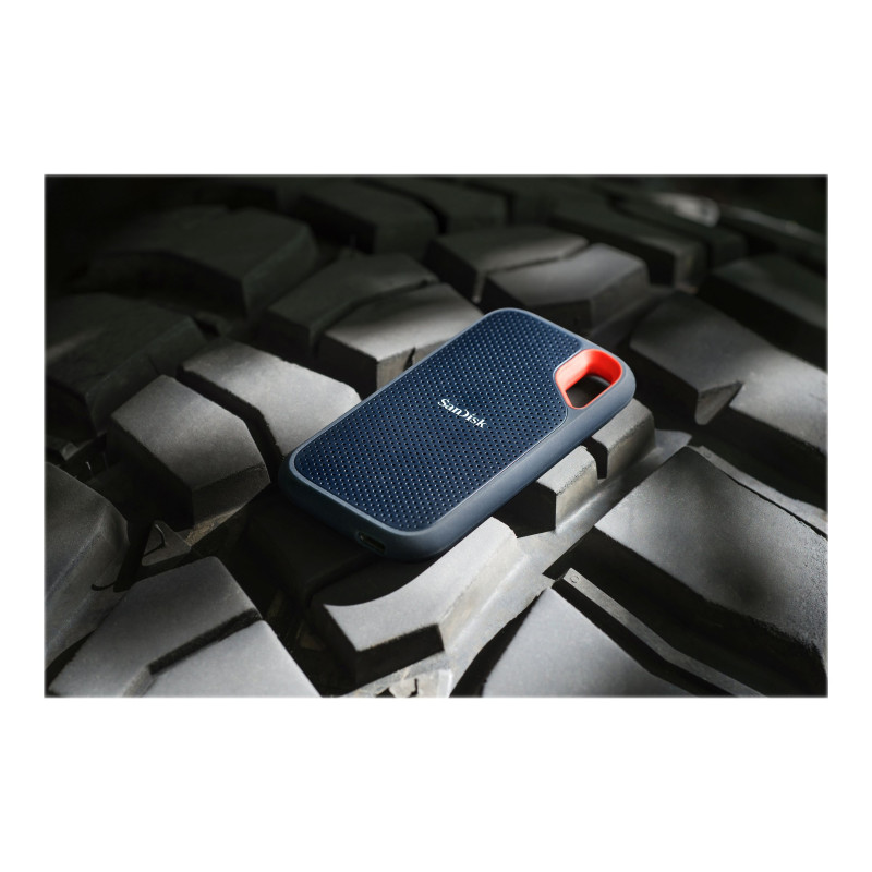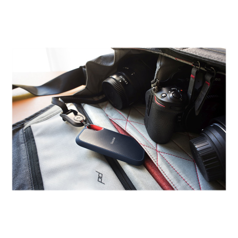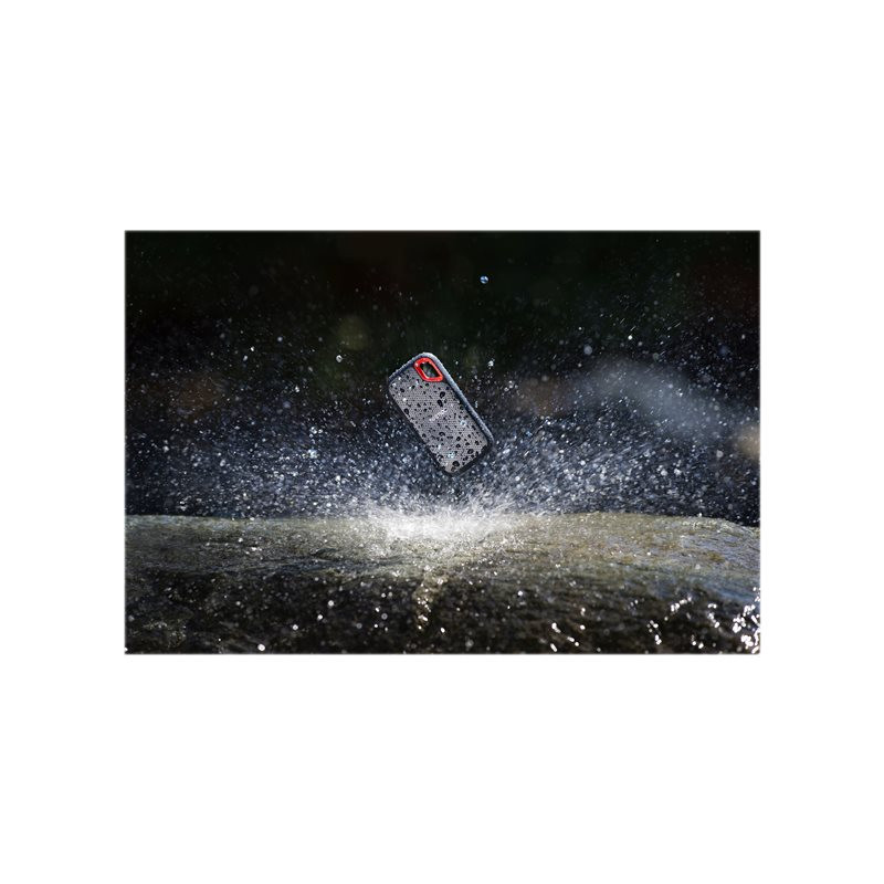 | The rugged SanDisk Extreme Portable SSD delivers high-speed transfers with up to 550MB/s read speeds. This makes it perfect for saving and editing hi-res photos and videos. With an IP55 rating, it also stands up to rain, splashes, spills and dust. | |