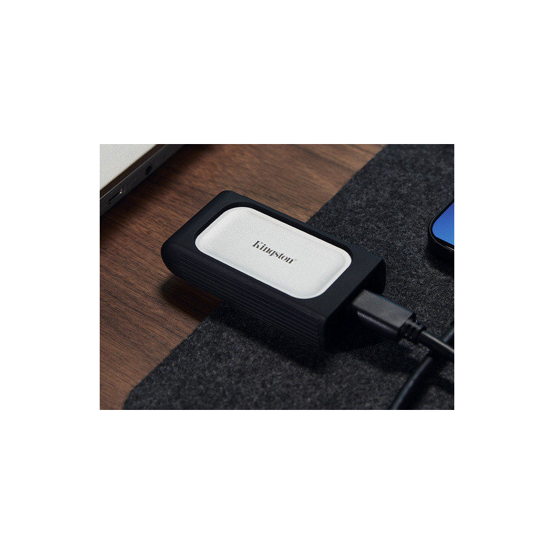 SSD je otporan na vodu, prašinu i padove s visine do 1,8 m. Ima IP55 ocjenu i dolazi s gumenim kućištem.