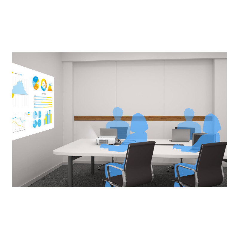 | The Epson EB-W56S is designed for immersive cinema and presentation experiences, offering striking visuals with a brightness of 3700 lumens and a dynamic contrast ratio of 16000:1. Its 3LCD technology supports 1.07 billion colors, enriching colors and clarity for any setting, whether it's a boardroom or a home theater. With a native resolution of 1280 x 800, this projector excels in producing detailed and vibrant images, making it suitable for various multimedia applications. Advanced features such as Blackboard Mode and Auto Source Detection ensure seamless presentations with minimal setup time. The projector's ability to accommodate a minimum image size of 127 cm and a maximum of 762 cm provides flexibility for different room dimensions, while the manual zoom and focus options allow for precise adjustments. Additionally, with various connectivity options including HDMI, VGA, and mini-phone stereo inputs, the EB-W56S is versatile enough to meet diverse connectivity needs. | |