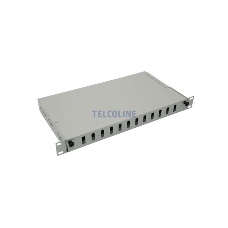 NFO Patch Panel 1U 19" - 12x SC Duplex, Pull-out, 1 cassette - Weight: 2 kg Number of trays: 1 Tray capacity: 12 24 welds Maximum number of adapters: 12 (SC Duplex) Maximum number of trays: 3 Material: Cold-rolled steel - powder painted in light gray Dimensions: Installation height: 1U (44.45 mm), Depth: 250 mm, Mounting method (length): 19 '' profile Diameter of holes on the back: Rubber 2x20 mm, for Cable gland: 2 x PG.13.5 Kit components: One fiber optic tray, Cable gland: 2 x PG.13.5, Mounting screws for adapters: 38 pcs, Plastic clamps: 2 pcs, Spare screws: 8pcs (small) and 2pcs (large), Spare nuts: 6pcs (small) and 3pcs (large), Splice covers: 1pack 24pcs