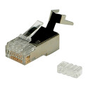 Opis • Cat.6 modularni konektori (8p8c) • Štiti (shielded) • Zlatom pozlaćeni kontakti • Za čvrste (solid) žice • Namijenjeni za okrugle kabele • Dolaze s umetkom • Pakiranje: 10 konektora