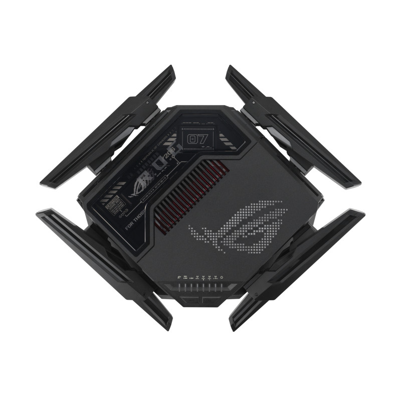 ASUS ROG Rapture GT-BE98, Wi-Fi 7 (802.11be), Quad-band (2.4 GHz / 5 GHz-1 / 5 GHz-2 / 6 GHz), Ethernet LAN veza, Crno, Stolni usmjerivač