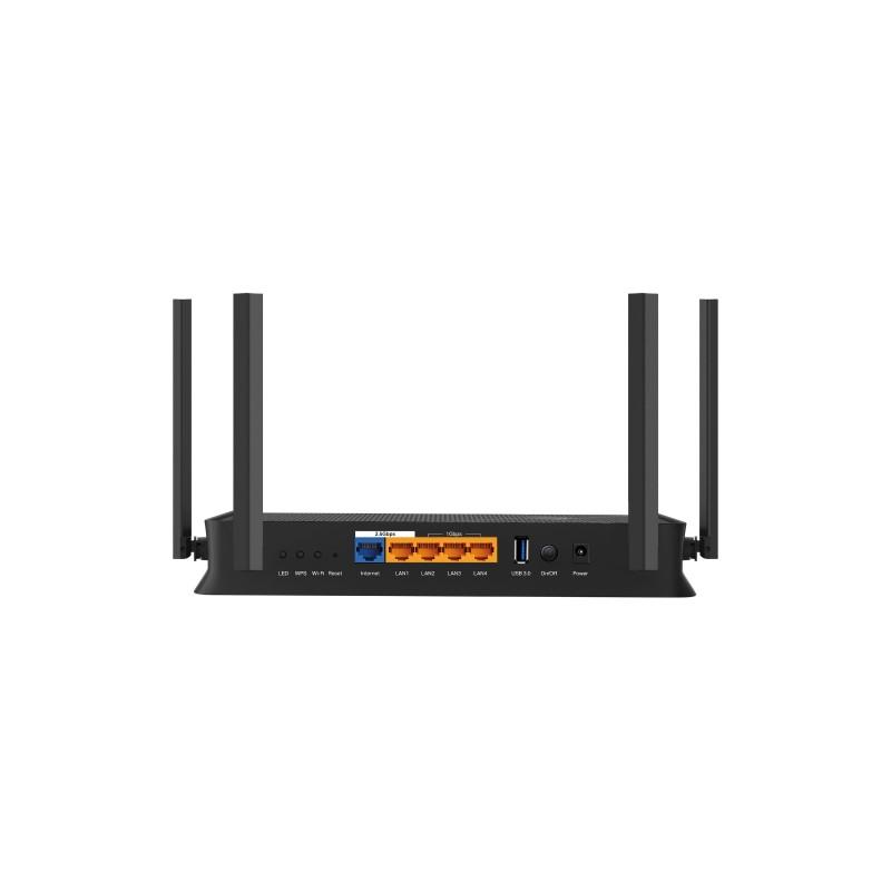 - Ethernet portovi: 1× 2,5 Gbps WAN, 1× 2,5 Gbps LAN, 3× 1 Gbps LAN