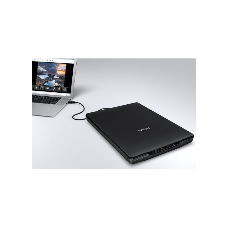 | This easy-to-use, USB-powered scanner has a sleek and space-saving design. An integrated stand allows for added flexibility as the scanner can be used flat as well as on its side to help save desk space. With 4800 dpi and fast scan speeds, the V39 will produce high-quality results quickly. You can easily store and share your photos and documents online by scanning to cloud or straight to Facebook and Picasa. | |