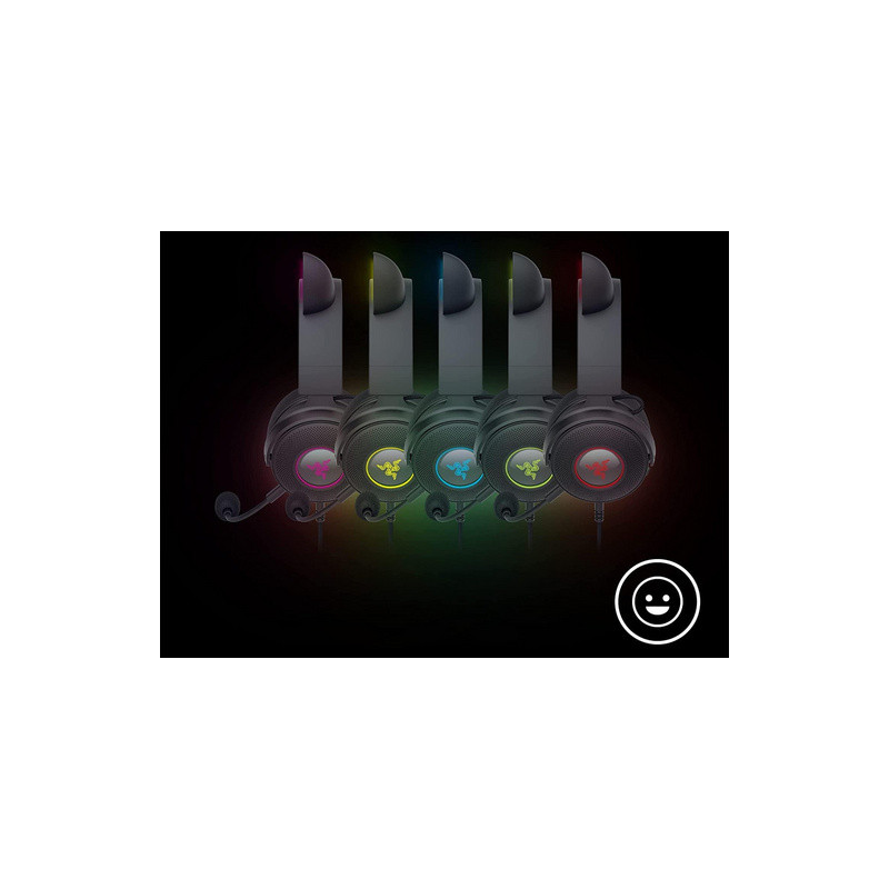 Slušalice se mogu spojiti na prijenosnu punjivu bateriju koja aktivira Razer Chroma RGB osvjetljenje. Zgodan za foto i video pothvate.