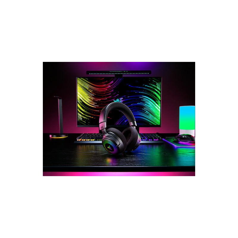 Slušalice su osvijetljene s do 16,8 milijuna boja i svjetlosnim efektima. Razer Chroma RGB osvjetljenje radi besprijekorno s preko 300 igara i 500 uređaja. Također vam omogućuje podešavanje osvjetljenja po pojedinim zonama.