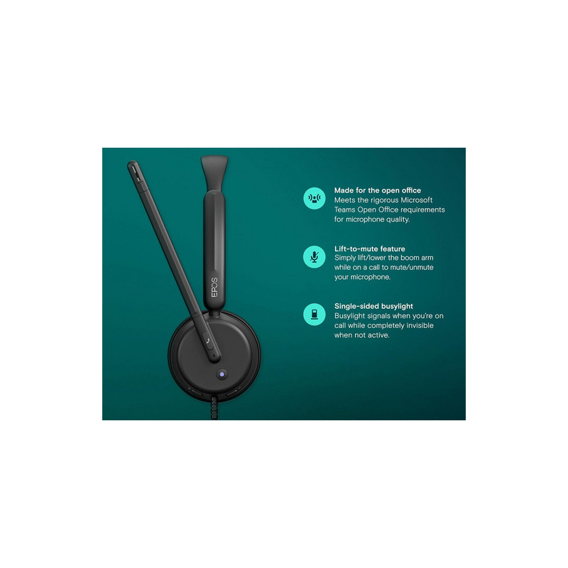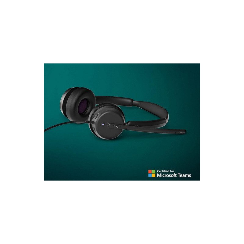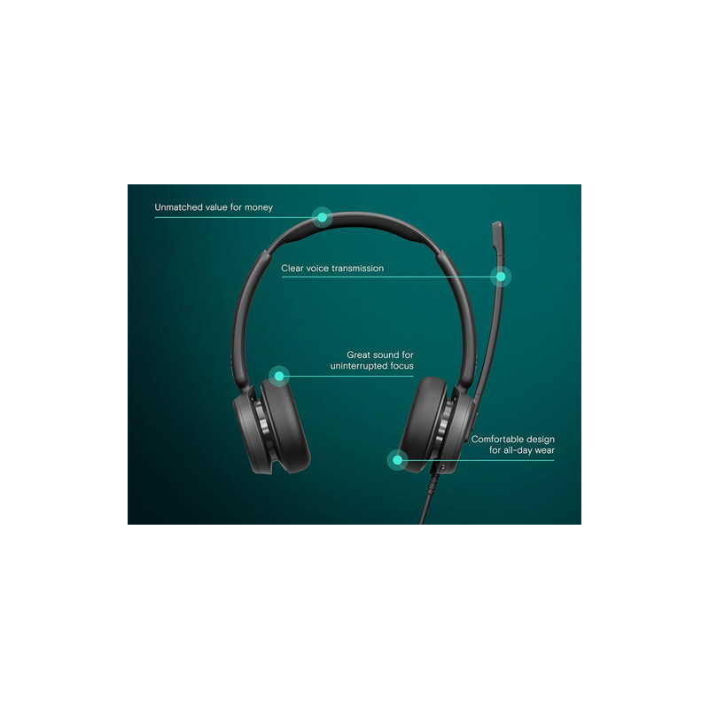 Zahvaljujući ultra laganom dizajnu i kompaktnim jastučićima za uši koji poništavaju buku, slušalice su udobne čak i tijekom cjelodnevne upotrebe. Upravljanje pozivima je jednostavno uz plug-and-play funkcionalnost, a praktične značajke poput podizanja za isključivanje zvuka pomažu vam da ostanete produktivni i imate kontrolu. Slušalice nude korisne značajke poput namjenskog gumba za Teams, lampice zauzetosti i LED lampice za isključivanje mikrofona, osiguravajući intuitivno i besprijekorno korisničko iskustvo.