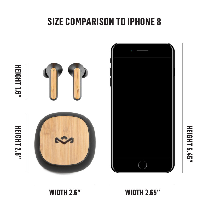 ANC slušalice House of Marley Redemption nude istinsku bežičnu zvučnu tehnologiju integriranu s vrhunskom tehnologijom aktivnog poništavanja buke (ANC). S produženim vijekom trajanja baterije i kućištem za punjenje, udobnim prijanjanjem, stabilnim Bluetooth®-om i performansama mikrofona te besprijekornom povezivošću, Redemption ANC slušalice daju vam slobodu koju zaslužujete. Značajke: Otkupne ANC slušalice za uši izrađene su od bambusa, kompozita od prirodnih drvenih vlakana REGRIND narav i silikona REGRIND s. Redemption ANC slušalice imaju 5 sati trajanja baterije s ANC-om i 7 sati bez ANC-a te kućište za punjenje s 3 dodatna punjenja, ukupno 20 sati reprodukcije. Uključite funkciju na tijelu slušalica za upravljanje dodirom za jednostavnu reprodukciju, zaustavljanje ili promjenu glazbe, primanje poziva i još mnogo toga. Slušalice u uhu otporne su na znoj i vremenske utjecaje na razini IPX4. Stereo glasovna komunikacija omogućuje vam da čujete i čujete se jasno kao da imate telefon uz uho. Prikladno USB-C punjenje omogućuje vam upotrebu bilo kojeg USB-C punjača ili dodatne opreme sa svojim Redemption ANC slušalicama i njihovim kućištem za punjenje. Tehnički podaci: Bluetooth 5.0 + BLE Domet bežične veze ≥ 10 m 8,6 mm x 2 zvučnika Impedancija (ohm) 16 Ω ± 15% Težina baterije za slušalice: 0,84 g; Kućišta: 10 g Frekvencijski odziv 20 Hz-20 kHz Dimenzije proizvoda 6,60 cm x 6,60 cm x 3,17 cm Težina proizvoda 0,068 kg