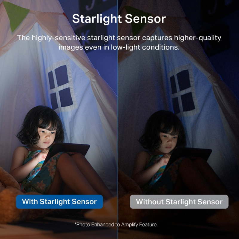 - The highly sensitive starlight sensor captures higher-quality images even in low-light conditions up to 30 ft.