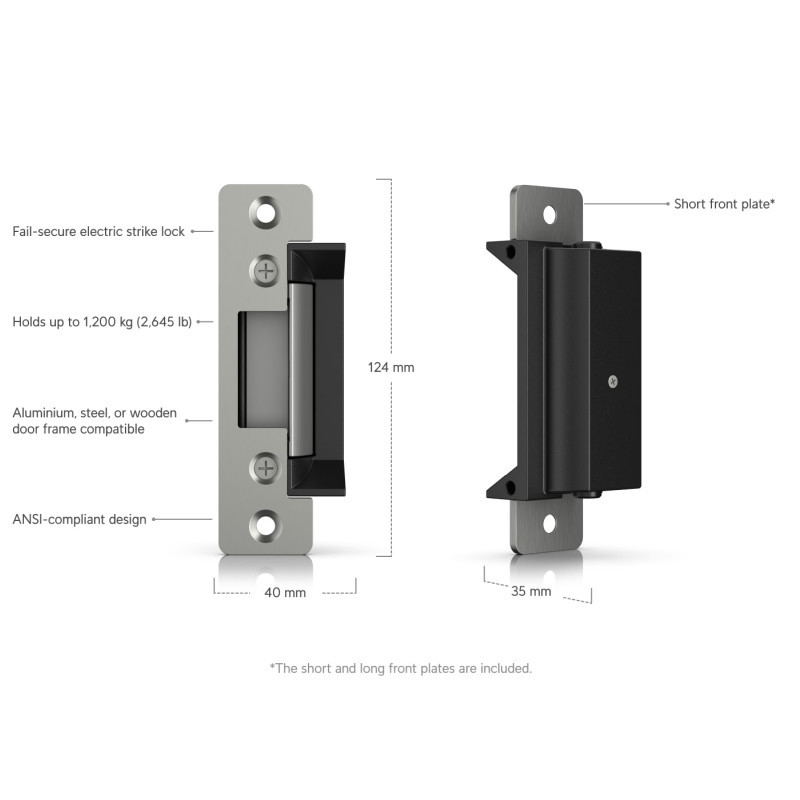 - Fail-secure electric strike lock that connects to a UniFi Access Hub.