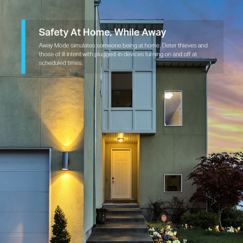 - Automatically turns devices on and off at different times to give the appearance that someone is home.