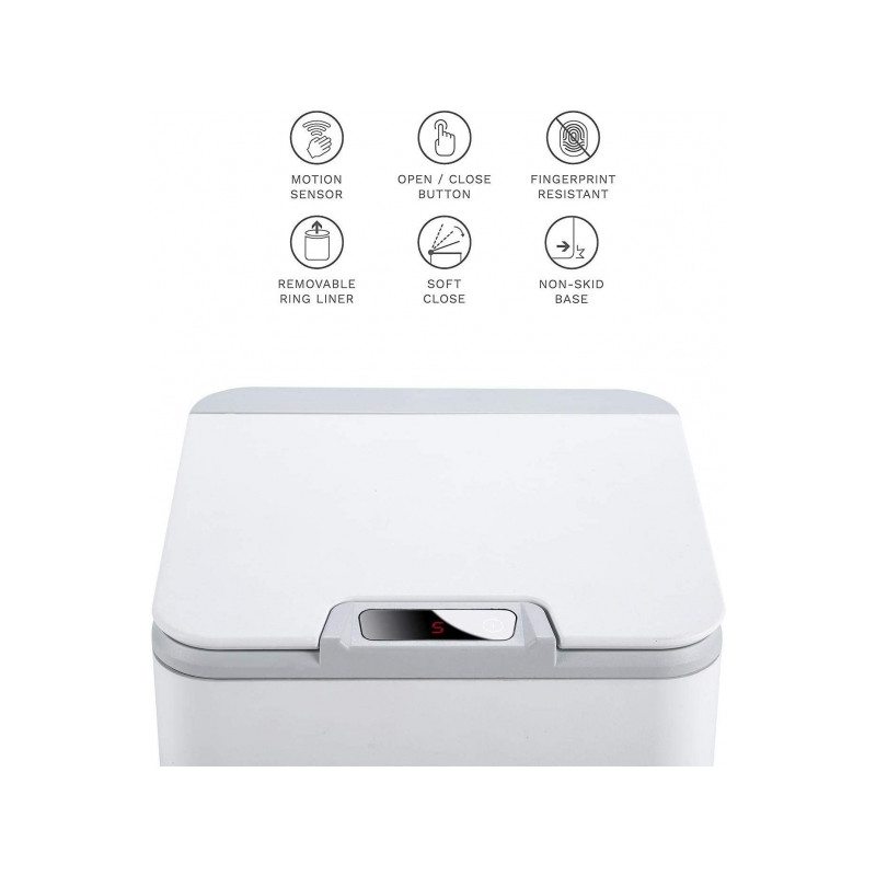 2 ugrađena TouchLess elektronička senzora osiguravaju automatsko otvaranje i zatvaranje poklopca košare, točno kada je potrebno, samo prinesite ruku ili predmet vrhu spremnika, kada se smeće baci u košaru, poklopac se ponovno zatvori za nekoliko sekundi