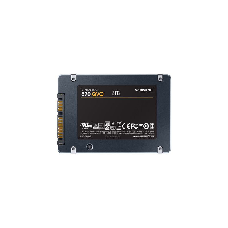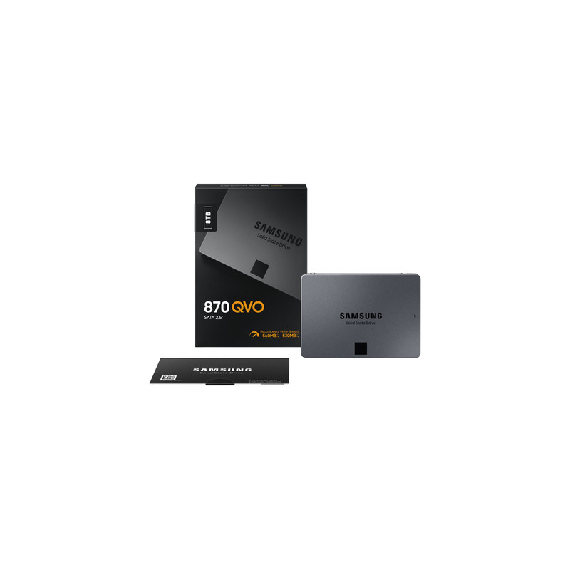 Samsung MZ-77Q8T0. SSD kapacitet: 8000 GB, SSD format: 2.5", Brzina čitanja: 560 MB/s, Brzina zapisivanja: 530 MB/s, Brzina prijenosa podataka: 6 Gbit/s, Komponenta za: PC/osobno računalo