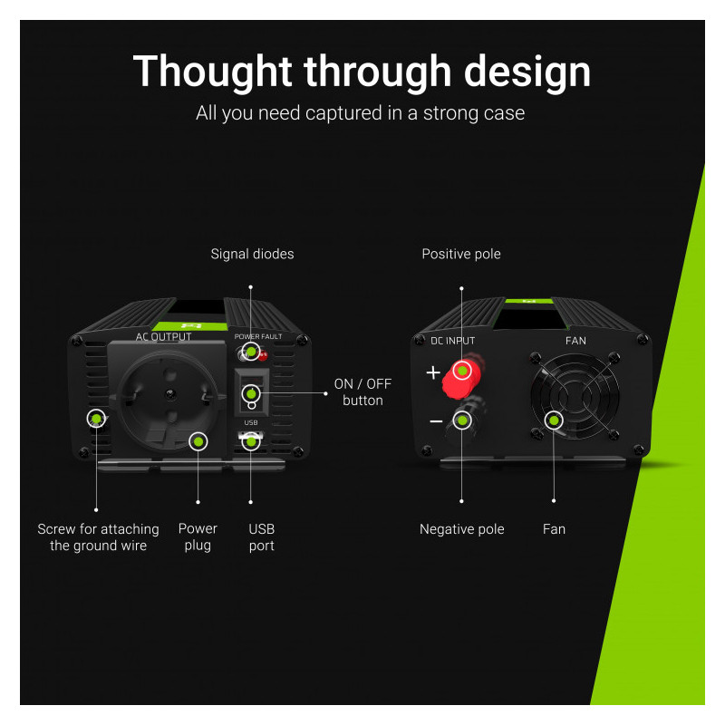 Green Cell strujni inverter 12V na 230V, 300W/600W (INV01DE)
