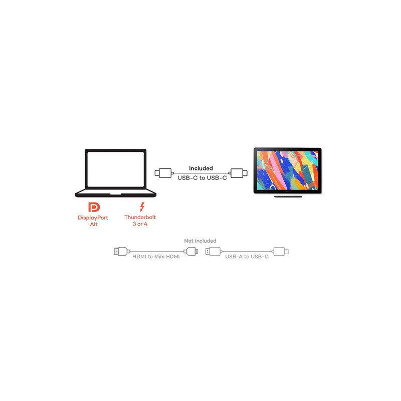 Jednostavno se povežite USB-C kabelom s Windows i Mac računalima s DisplayPort Alt ili Thunderbolt 3 i 4 priključcima. Za povezivanje s drugim računalima potrebni su dodatni kabeli.