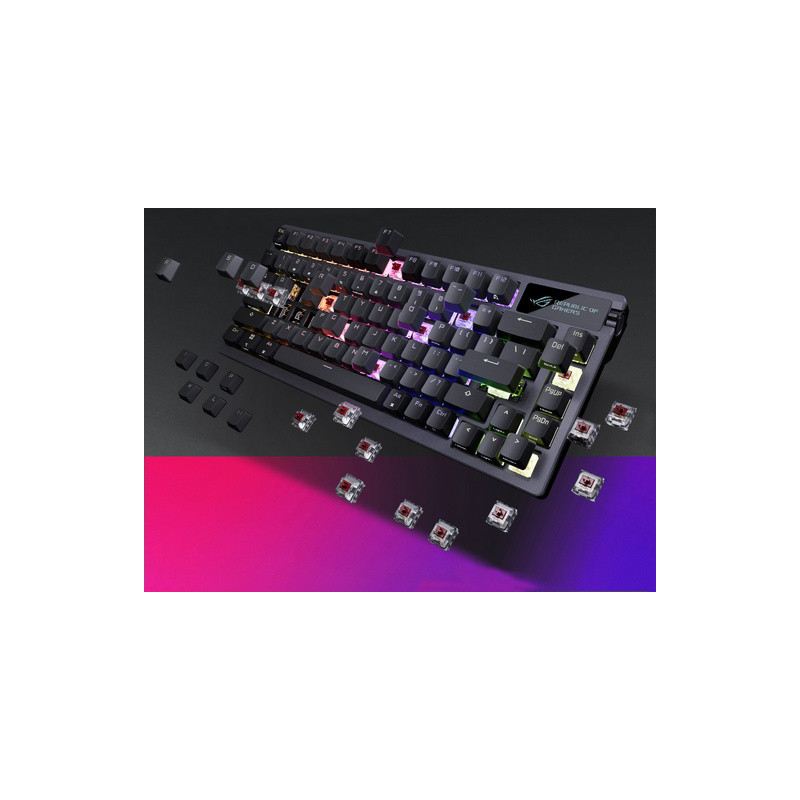 ROG Azoth je izuzetna gaming tipkovnica s vrhunskim značajkama. Metalna gornja ploča sa silikonskom brtvom, zamjenjivi i tvornički podmazani mehanički prekidači. Tipkovnica ima i otporne PBT tipke, au kompletu je i sve što vam je potrebno za održavanje prekidača i podešavanje prema vlastitim potrebama i željama.