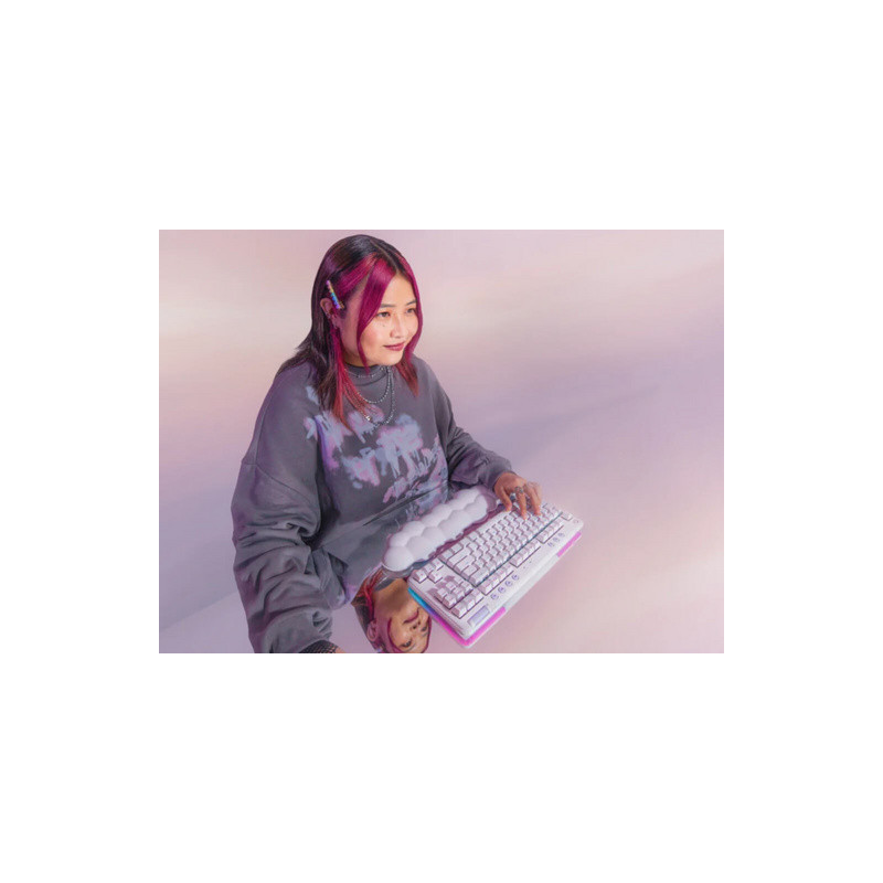 Tipkovnica vsebuje naslon za zapestje v obliki oblakov, ki podpira zapestje med igranjem. TKL format z 87 tipkami je kompakten in zasede manj prostora na mizi.