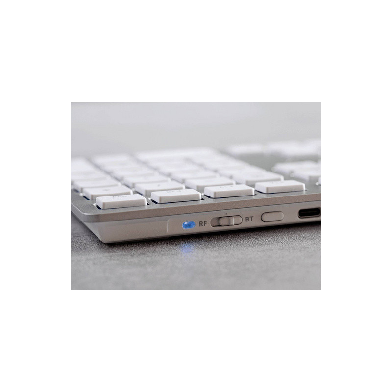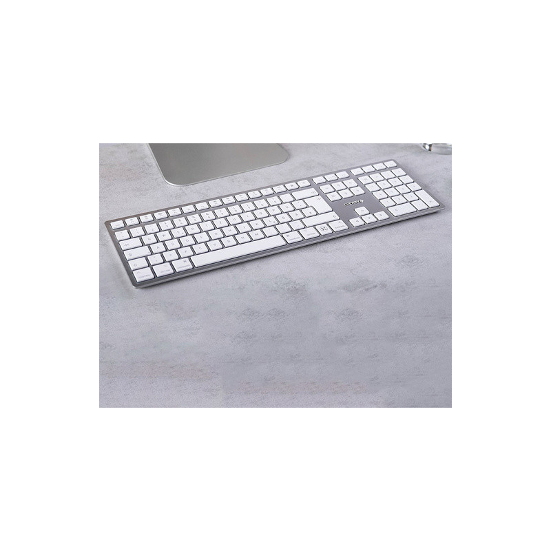KW 9100 Slim za Mac ima bezvremenski, minimalistički dizajn i savršeno ide uz bilo koje Mac računalo. Omogućuje AES128 šifriranu vezu s Bluetooth vezom ili s bežičnim 2,4 GHz USB prijamnikom. Također ima punjivu bateriju od 650 mAh koja se puni priloženim USB-C kabelom.