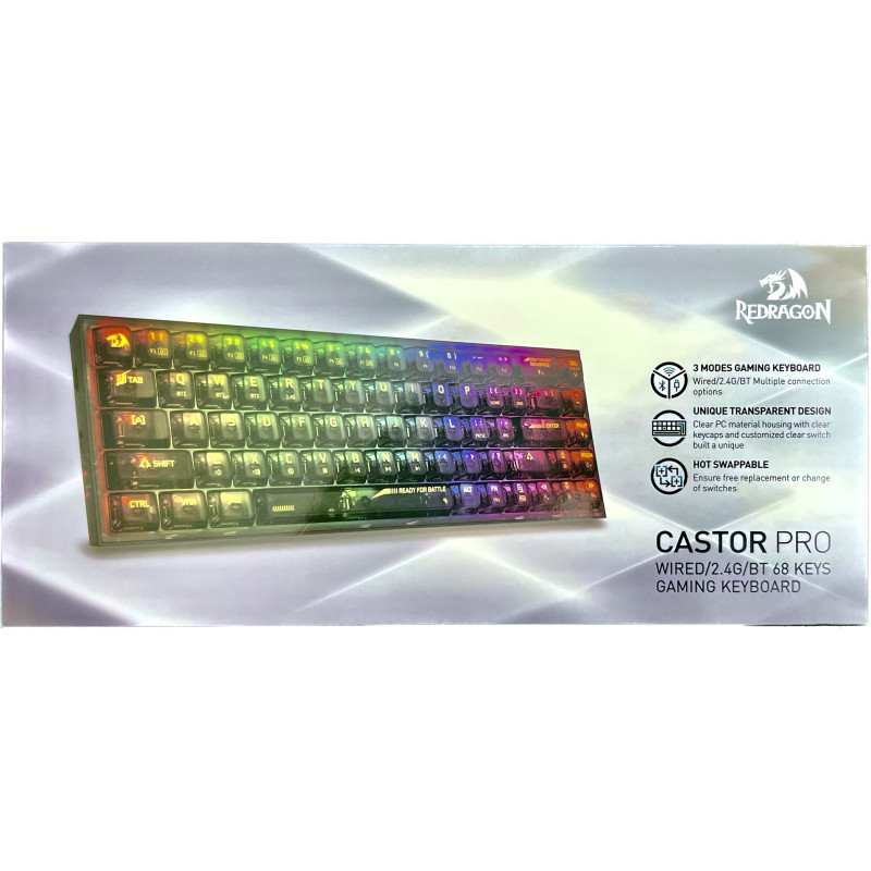 DA! Pravi HOT-SWAP - Tipkovnica je kompatibilna s 99,8%+ prekidača koji se mogu zamijeniti na Hot-Swat način. Jedinstveni ekskluzivni dizajn strukture utičnice olakšava i ubrzava ugradnju prekidača. Tri načina povezivanja - Opremljen Redragonovom inovativnom tehnologijom povezivanja u tri načina, žičanim USB-C, BT 3.0/5.0 i 2.4GHz bežičnim načinima, što čini korisničko iskustvo nadograđenim na višu razinu u svim područjima. "HOT SWAP" prilagođena zamjena prekidača - "Hot swap" s gotovo svim tipovima prekidača na tržištu, bilo da su 3 ili 5 pinski prekidači. Sada je dostupna utičnica za besplatnu zamjenu modula. Ekskluzivna utičnica sljedeće generacije čini montažu prekidača lakšom i stabilnijom nego ikad prije. Vibrant Groovy RGB - Možete sami odabrati do 20 unaprijed postavljenih načina osvjetljenja. Svjetlina i brzina strujanja također se mogu podesiti na tipkovnici. Prekrasan novi način sinkronizacije glazbe osvijetlit će disko vibracije na vašoj radnoj površini, svjetlosna predstava u koju možete uroniti. Podržan profesionalni softver - Proširite svoje mogućnosti korištenjem dostupnog softvera za dizajniranje vlastitih novih načina rada i efekata, koji se mogu pronaći na službenoj web stranici Redragon, a makronaredbe s različitim vezama tipki ili prečacima omogućuju vam učinkovitiji rad i igranje igara. Značajke: 60% tipki Bežična RGB mehanička tipkovnica kompatibilna s MX prekidačima Tri načina povezivanja: Žično/2.4G/BT 68 tipki kompaktan prijenosni dizajn Kompatibilan s 99,8%+ vrsta mehaničkih prekidača RGB pozadinsko osvjetljenje Odvojivi USB Type-C kabel Učinkovita ugrađena punjiva baterija Softver koji omogućuje osobne postavke tipkovnice (samo Windows)