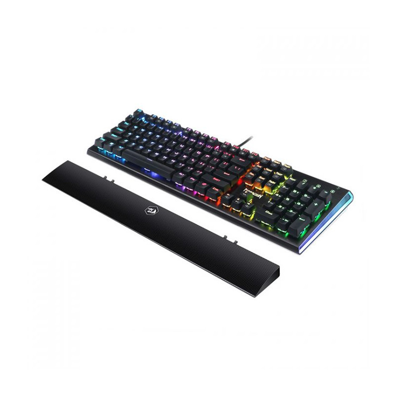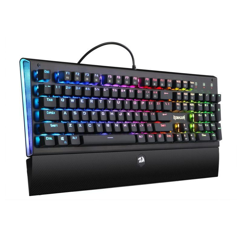 Redragon K569 Aryaman je sofisticirana mehanička tipkovnica, koju karakterizira izuzetno kvalitetno kućište od ABS materijala i legure aluminija, dvostruke brizgane tipke, mogućnost različitog RGB LED osvjetljenja podesive jačine, pozlaćeni USB konektor i otpornost u slučaju izlijevanja tekućine. Tipkovnica je iznimno izdržljiva, s podesivim donjim neklizajućim nogicama koji omogućuju postavljanje optimalnog kuta tipkanja ili igranja, a odvojive tipke na tipkovnici omogućuju jednostavno čišćenje tipkovnice. Tehničke informacije: Povezivost: Žičana Sučelje: USB 2.0 Mehanička tipkovnica Crveni prekidači Broj osvjetljenja: 9 Podesiva svjetlina (4 razine svjetline LED) Izdržljivost tipkovnice: do 50 milijuna pritisaka tipki 104 anti-ghosting tipke 12 multimedijskih tipki Zamijenite WASD i tipke sa strelicama Tipke WIN mogu se onemogućiti tijekom igre Odvojivi nosač za zglob/dlan Dimenzije: 451 x 205 x 40 mm Težina: 1256 g Duljina kabela: 1,8 m Crna boja Materijal: ABS/legura aluminija US Layout