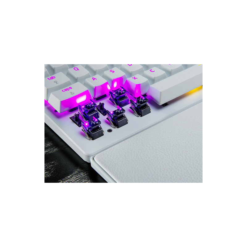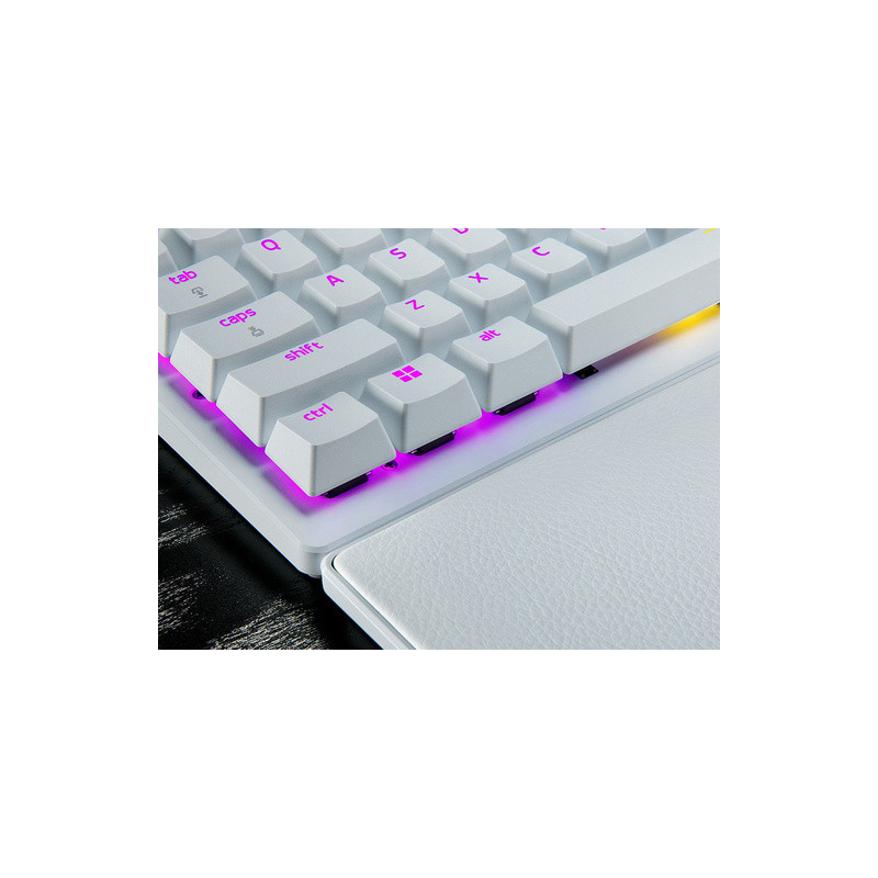 Za udobnost tijekom korištenja uključen je naslon za ručni zglob koji uz pomoć magneta uvijek savršeno pristaje uz tipkovnicu. Pruža ergonomsku potporu za zglob. Tipkovnica također ima pojedinačno osvijetljene tipke koje omogućuju niz različitih svjetlosnih efekata i boja.