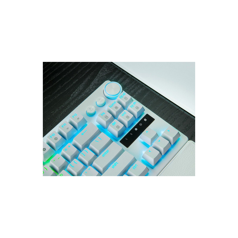 Tipkovnica uključuje okretni gumb koji vam omogućuje promjenu postavki: od podešavanja glasnoće do promjene ponašanja analognih prekidača. Osim toga, tu su i tri tipke koje su namijenjene za upravljanje medijskim sadržajem ili makro naredbama.