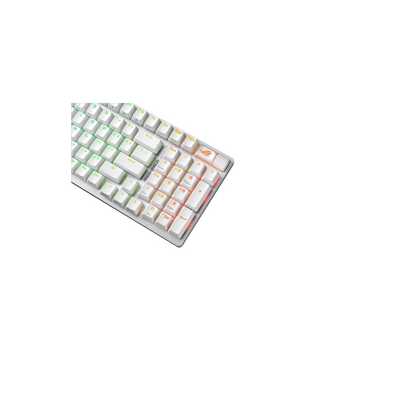 Tipkovnica ima pojedinačno pozadinski osvijetljene dvoslojne PBT tipke s ROG NX Snow mehaničkim prekidačima. Prekidači nude nevjerojatno gladak osjećaj pritiska tipki, stabilni su i s tvornički nauljenim stabilizatorima osiguravaju čvrst i jasan zvuk. Tipkovnica također ima pjenu za zvučnu izolaciju iznutra kako bi se uklonio šuplji zvuk tijekom tipkanja i igranja. Prekidači se također mogu brzo zamijeniti za savršen osjećaj tipkanja.