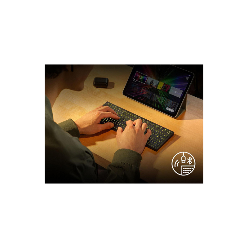 Tipkovnica se može spojiti na do tri uređaja putem Bluetootha ili USB-C priključka. Radi s Windowsima, Macom i mobilnim uređajima. Baterija traje do 1800 sati u načinu rada za uštedu energije i do 10 sati u standardnom načinu rada s 50% osvjetljenja tipki.