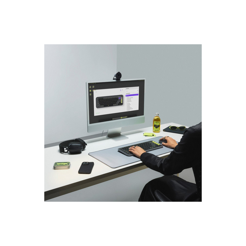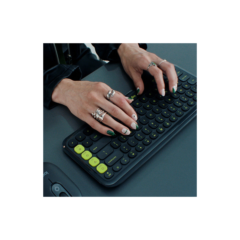 Glatke, niskoprofilne tipke bežične tipkovnice dizajnirane su za precizno, udobno i tiho tipkanje. Na desnoj strani nalaze se prilagodljive tipke koje olakšavaju rad, igru i zabavu. Tipke možete prilagoditi pomoću aplikacije Logi Options+.